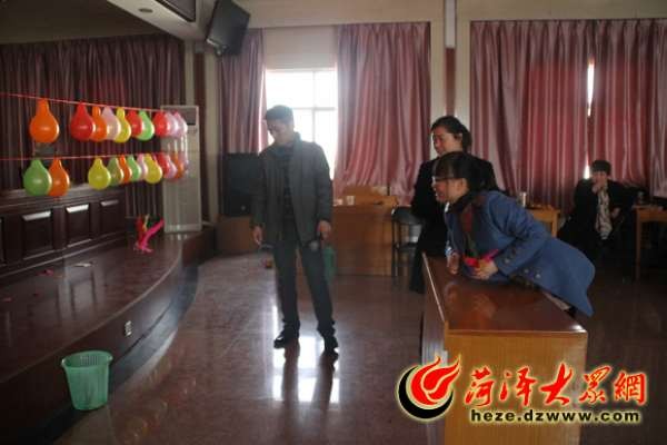 大眾網(wǎng)菏澤3月8日訊(記者 李亞 實(shí)習(xí)生 馮全紅)投籃、扎彩球、猜謎語、贏獎(jiǎng)品,今天下午,菏建集團(tuán)六樓會(huì)議廳,慶“三八國際勞動(dòng)?jì)D女節(jié)”謎語競猜活動(dòng)熱鬧地進(jìn)行著。