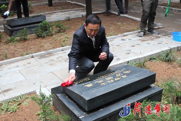 黨委副書記、紀委書記任永信為烈士墓揩去灰塵