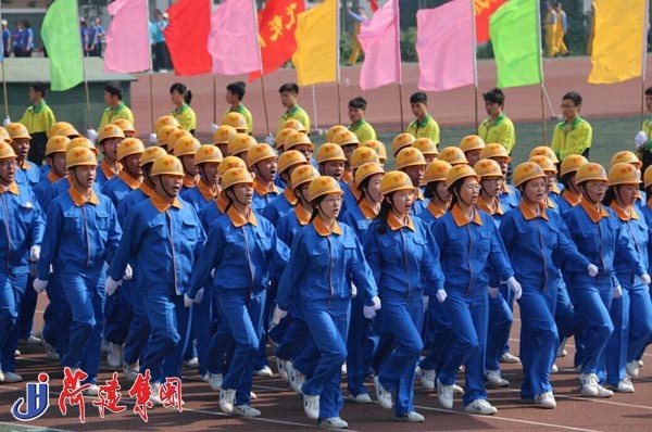 入場式上,集團組成65人方隊,他們身著統(tǒng)一鮮明的服裝,頭戴集團標識安全帽,踏著雄壯的《運動員進行曲》,高呼“團結拼搏、求真務實,開拓進取、爭創(chuàng)一流”的口號,精神抖擻,整齊劃一,盡情展現了菏建人的魅力,展示出菏建人昂揚向上的精神風貌,成為開幕式上一道絢麗的風景線,贏得了主席臺上省、市領導和現場觀眾的一致好評。